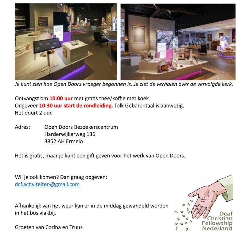 21 februari naar bezoekerscentrum Open Doors. Ga je mee? 28 januari 2026 Bericht navigatie Vorige bericht Vier Paaszaterdag in Zoetermeer